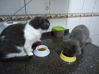 A cada 3 horas a minha assistente me pega no colo (eu me recuso a subir sozinha na bancada da cozinha) e degusto minha ração deliciosa...